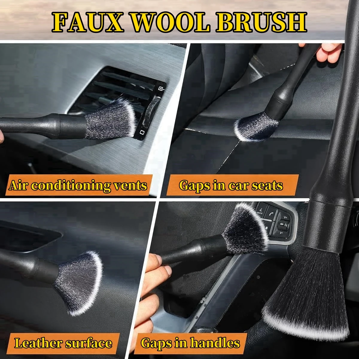 Elke borstel heeft een andere maat of vorm, zodat je elke hoek van je auto bereikt: dashboard, ventilatieroosters, deurpanelen en kleine spleten.